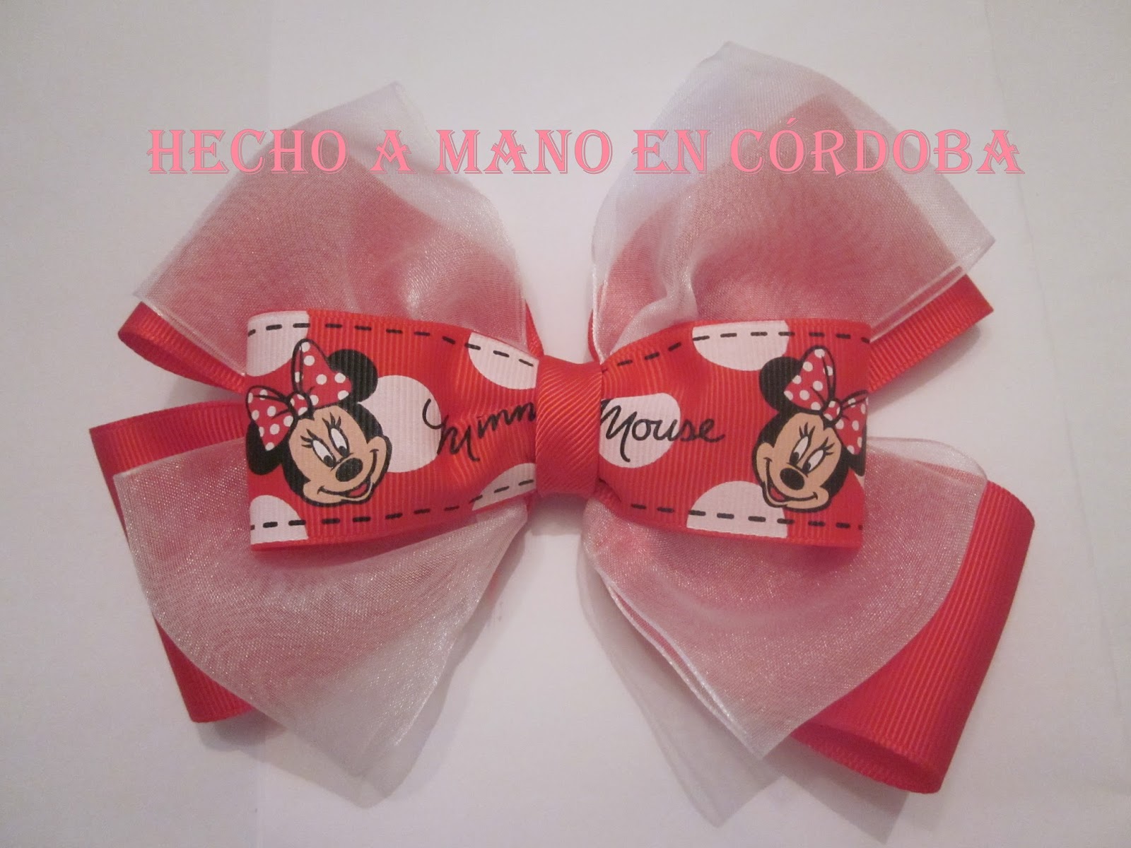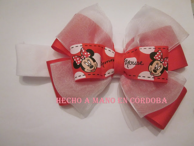 Diadema roja y blanca , fondo doble rojo y doble blanco tranparente, frontal simple Minnie Mause.