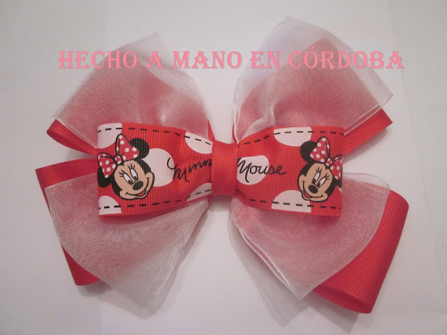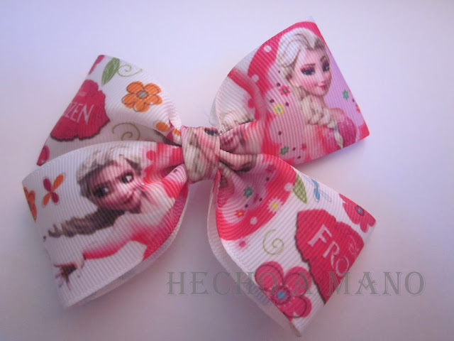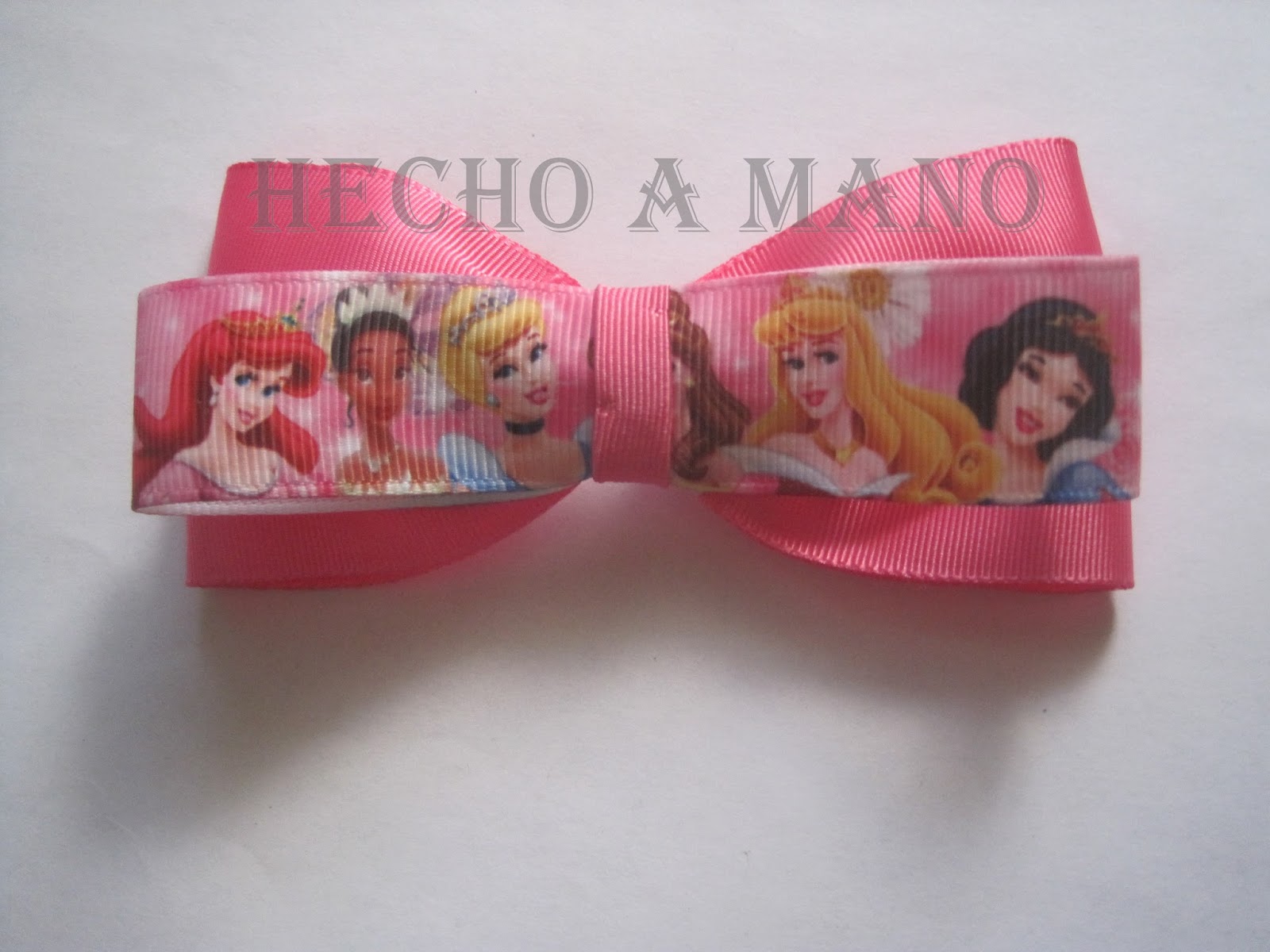 Lazo simple fondo rosa, frontal cara princesas Disney. Pedidos e información en hechoamanoencordoba@hotmail.com